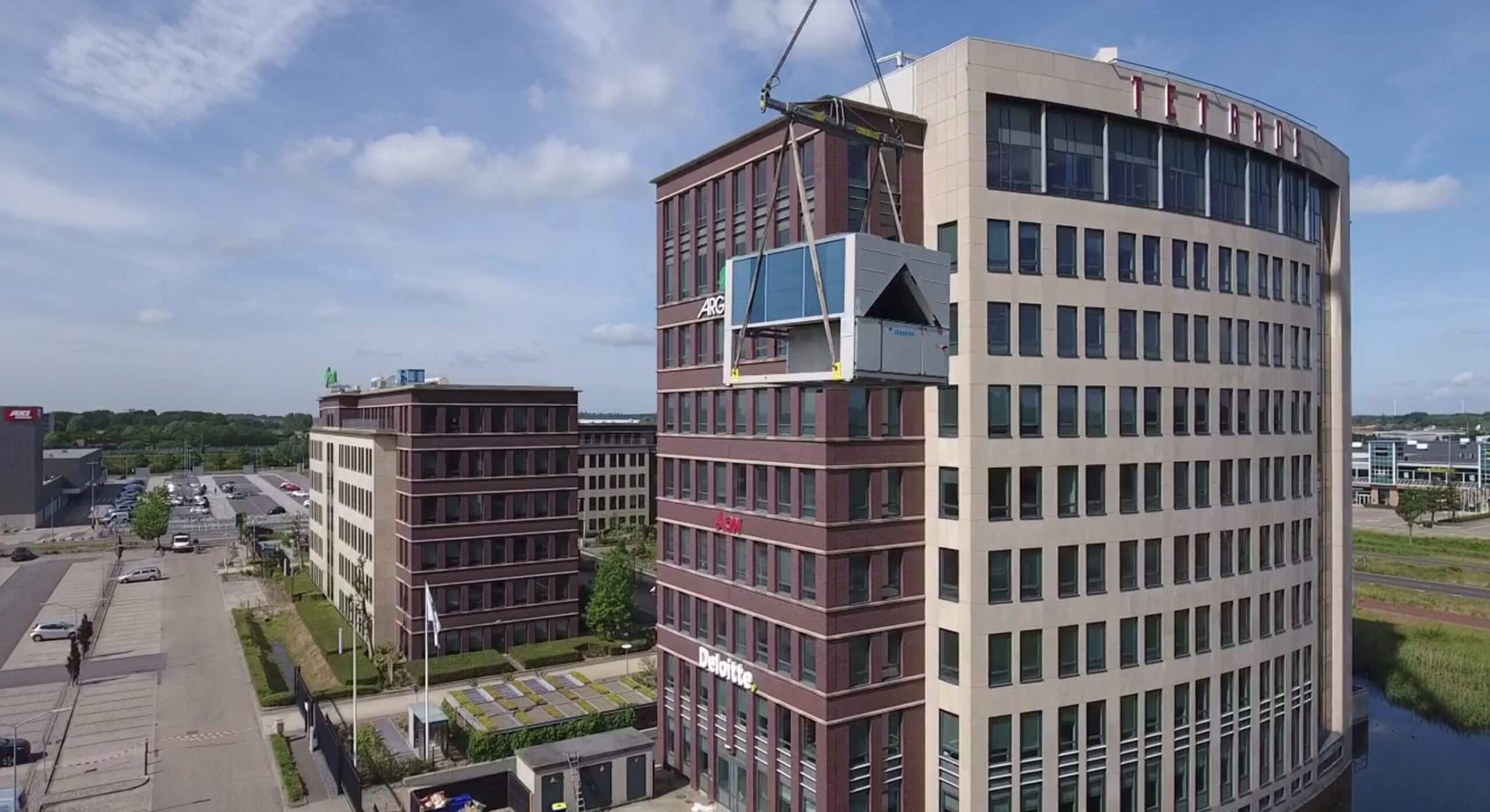 Tetrade II en III werden voorzien van gloednieuwe VRV Heat Recovery systemen. Waar eerder gekozen moest worden tussen koelen of verwarmen, kunnen de ruimtes dat nu tegelijkertijd. De bestaande luchtbehandelingskasten zijn vervangen en voorzien van na-conditionering (koelen of verwarmen) met energiezuinige warmtepompen die zorgen voor een constant en gezond binnenklimaat.